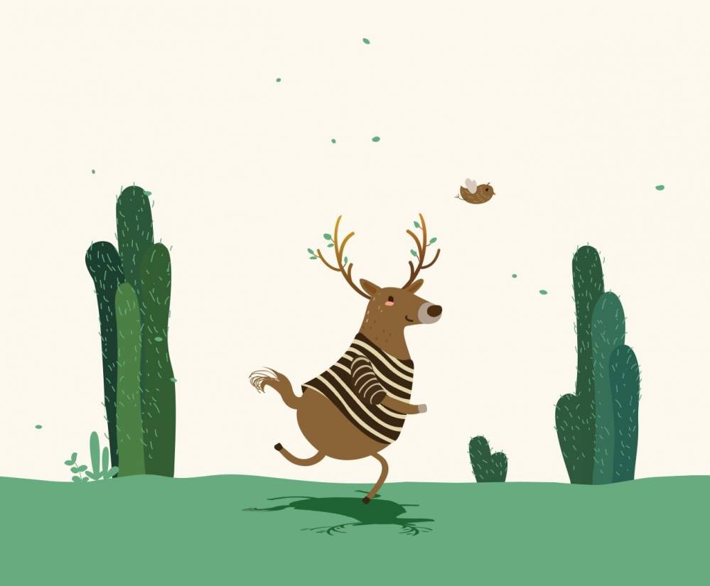 希望用一只卡通梅花鹿背個箱子奔跑的形象